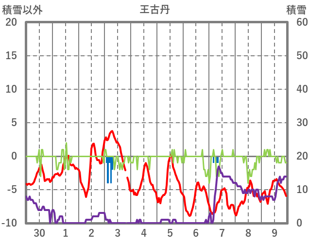 | 日 | 時 | 気温 | 降水 | 風向/風速 | 日照 | 積雪 | 降雪 |