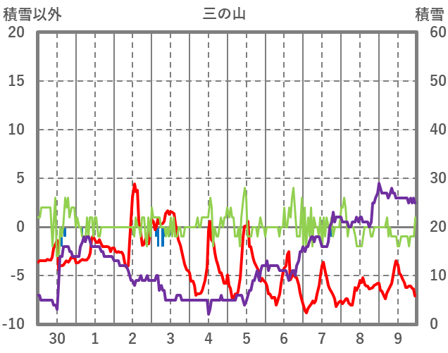 | 日 | 時 | 気温 | 降水 | 風向/風速 | 日照 | 積雪 | 降雪 |