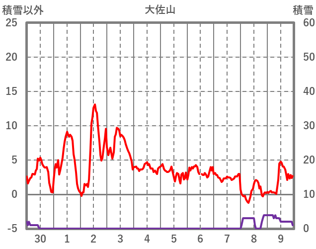 | 日 | 時 | 気温 | 降水 | 風向/風速 | 日照 | 積雪 | 降雪 |
