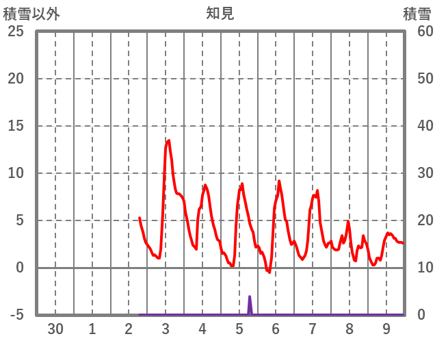 | 日 | 時 | 気温 | 降水 | 風向/風速 | 日照 | 積雪 | 降雪 |