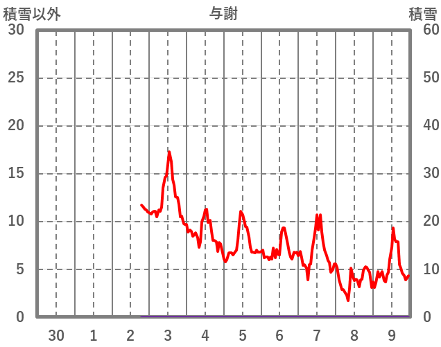 | 日 | 時 | 気温 | 降水 | 風向/風速 | 日照 | 積雪 | 降雪 |