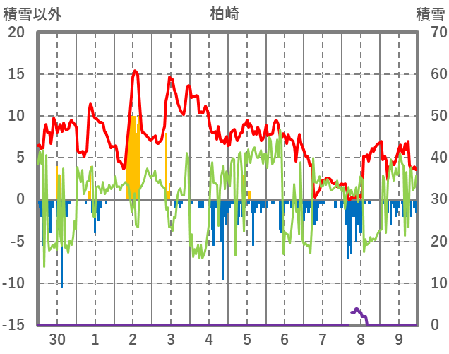 | 日 | 時 | 気温 | 降水 | 風向/風速 | 日照 | 積雪 | 降雪 |