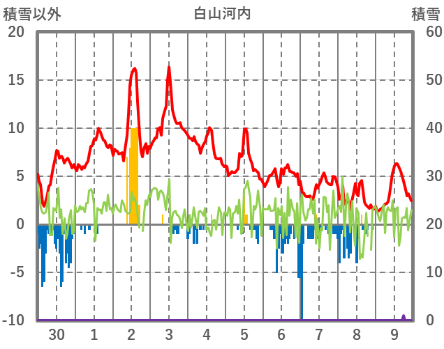 | 日 | 時 | 気温 | 降水 | 風向/風速 | 日照 | 積雪 | 降雪 |