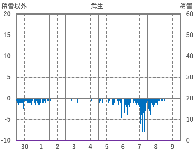 | 日 | 時 | 気温 | 降水 | 風向/風速 | 日照 | 積雪 | 降雪 |