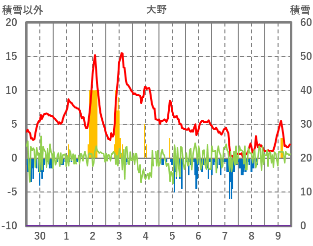 | 日 | 時 | 気温 | 降水 | 風向/風速 | 日照 | 積雪 | 降雪 |