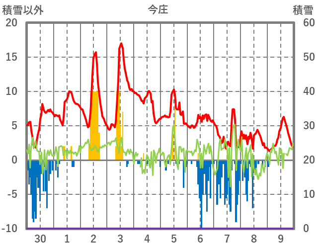| 日 | 時 | 気温 | 降水 | 風向/風速 | 日照 | 積雪 | 降雪 |