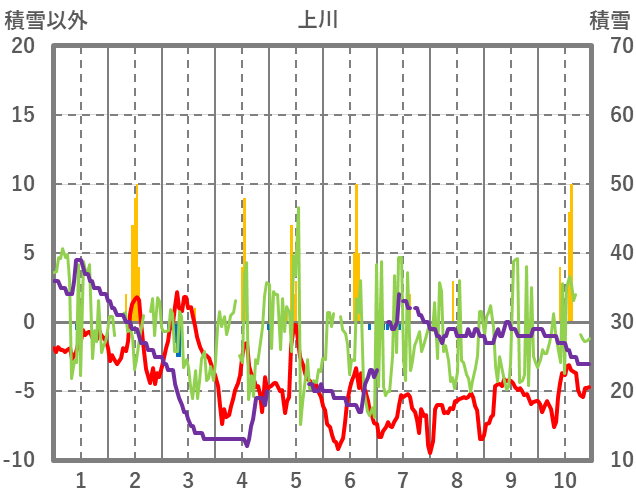| 日 | 時 | 気温 | 降水 | 風向/風速 | 日照 | 積雪 | 降雪 |