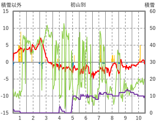 | 日 | 時 | 気温 | 降水 | 風向/風速 | 日照 | 積雪 | 降雪 |