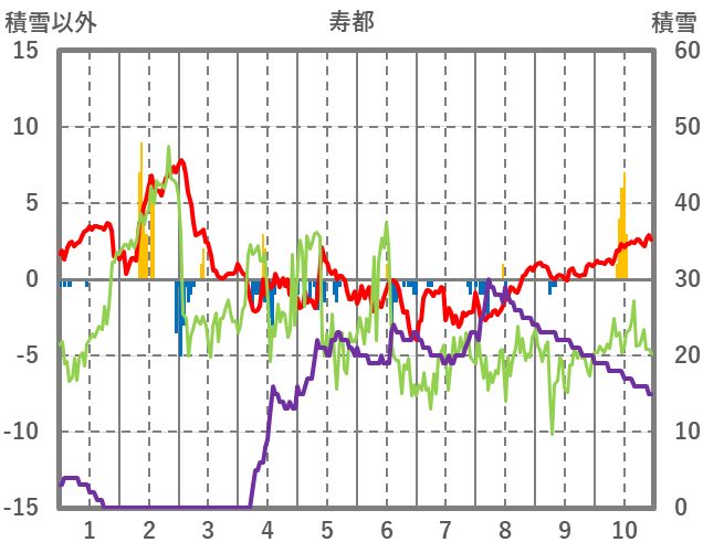 | 日 | 時 | 気温 | 降水 | 風向/風速 | 日照 | 積雪 | 降雪 |