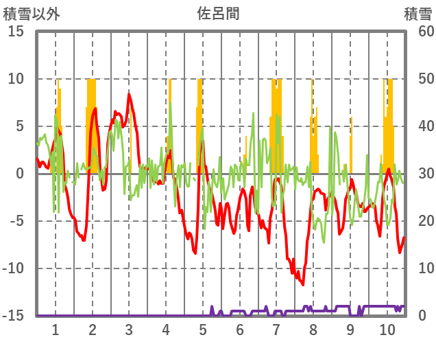 | 日 | 時 | 気温 | 降水 | 風向/風速 | 日照 | 積雪 | 降雪 |