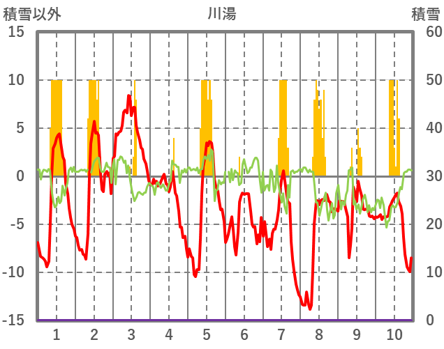 | 日 | 時 | 気温 | 降水 | 風向/風速 | 日照 | 積雪 | 降雪 |