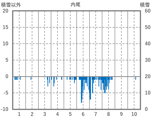 | 日 | 時 | 気温 | 降水 | 風向/風速 | 日照 | 積雪 | 降雪 |
