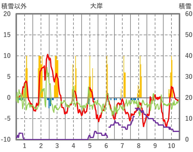| 日 | 時 | 気温 | 降水 | 風向/風速 | 日照 | 積雪 | 降雪 |