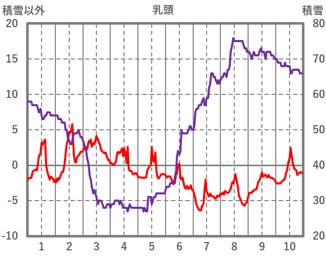 | 日 | 時 | 気温 | 降水 | 風向/風速 | 日照 | 積雪 | 降雪 |