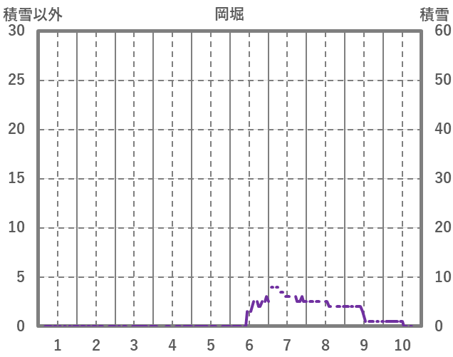 | 日 | 時 | 気温 | 降水 | 風向/風速 | 日照 | 積雪 | 降雪 |