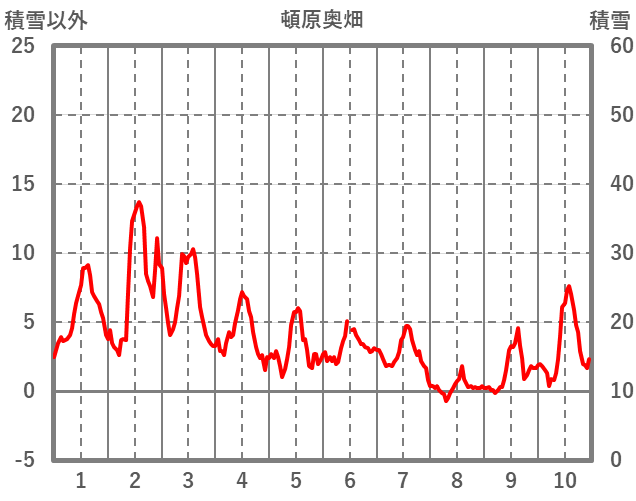 | 日 | 時 | 気温 | 降水 | 風向/風速 | 日照 | 積雪 | 降雪 |