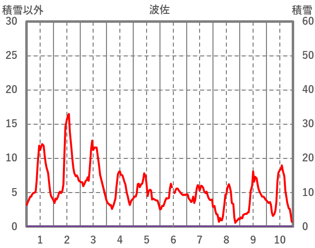 | 日 | 時 | 気温 | 降水 | 風向/風速 | 日照 | 積雪 | 降雪 |