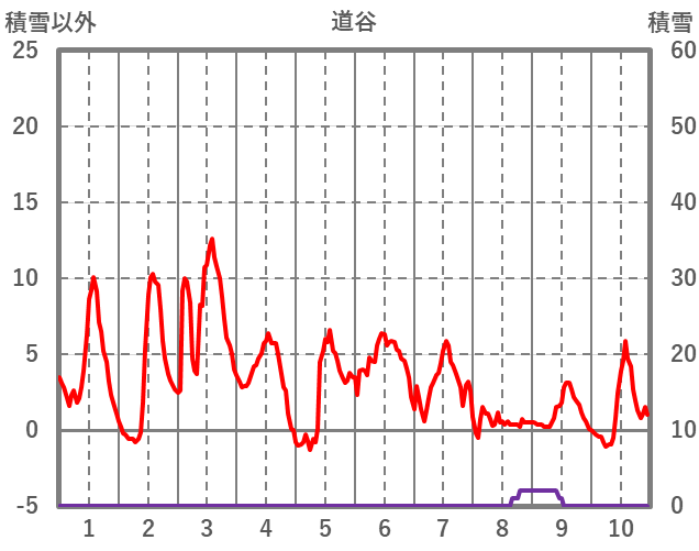 | 日 | 時 | 気温 | 降水 | 風向/風速 | 日照 | 積雪 | 降雪 |