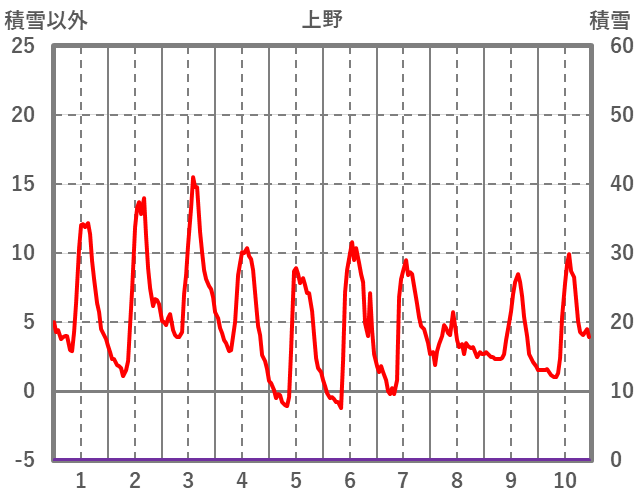 | 日 | 時 | 気温 | 降水 | 風向/風速 | 日照 | 積雪 | 降雪 |