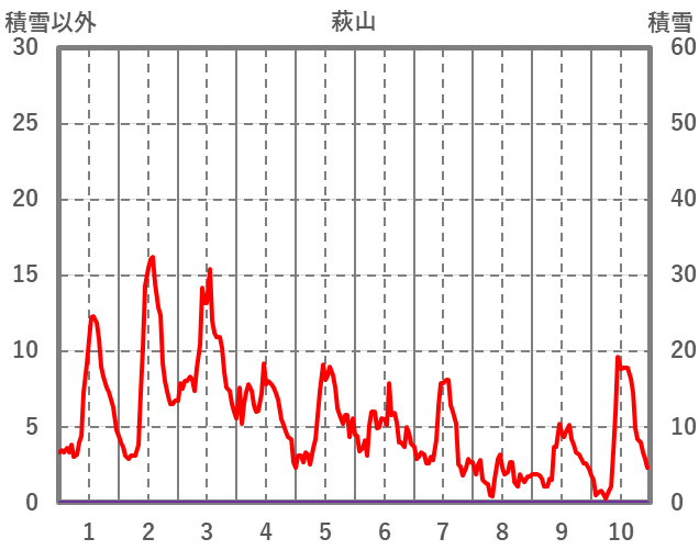 | 日 | 時 | 気温 | 降水 | 風向/風速 | 日照 | 積雪 | 降雪 |