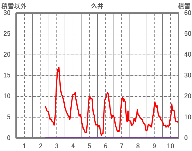 | 日 | 時 | 気温 | 降水 | 風向/風速 | 日照 | 積雪 | 降雪 |