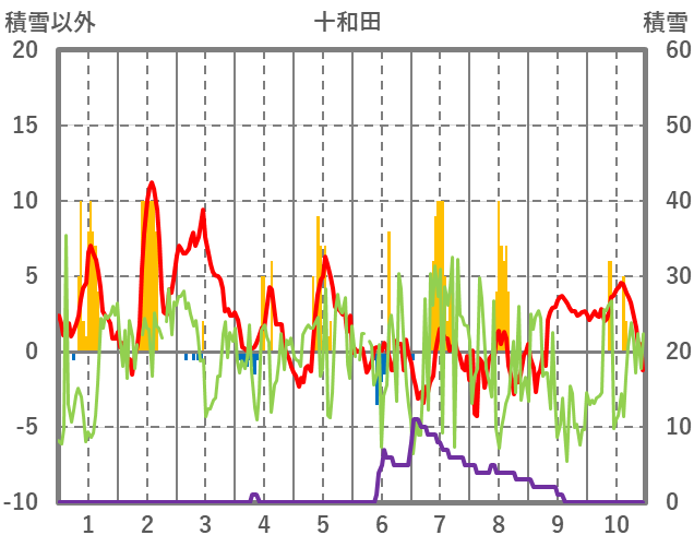 | 日 | 時 | 気温 | 降水 | 風向/風速 | 日照 | 積雪 | 降雪 |