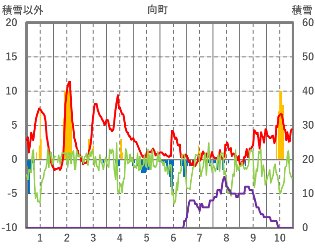 | 日 | 時 | 気温 | 降水 | 風向/風速 | 日照 | 積雪 | 降雪 |