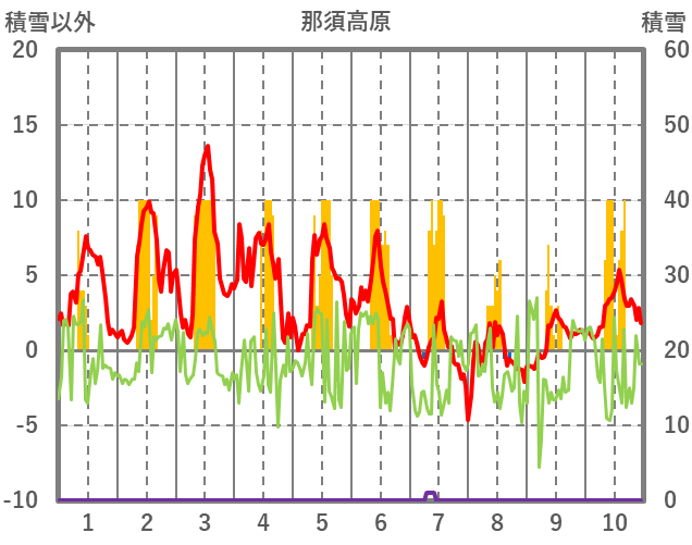| 日 | 時 | 気温 | 降水 | 風向/風速 | 日照 | 積雪 | 降雪 |