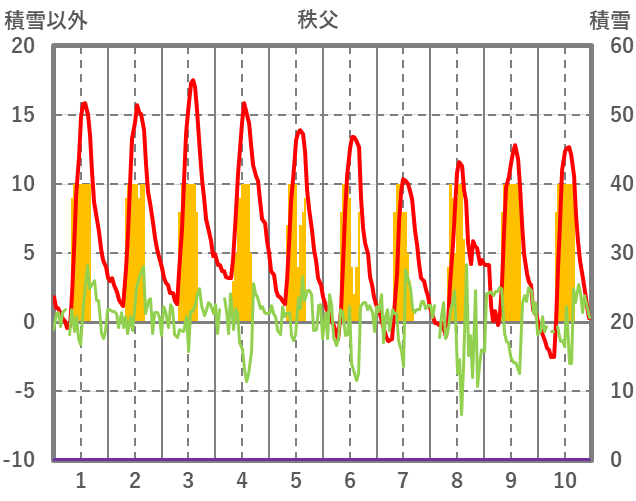 | 日 | 時 | 気温 | 降水 | 風向/風速 | 日照 | 積雪 | 降雪 |