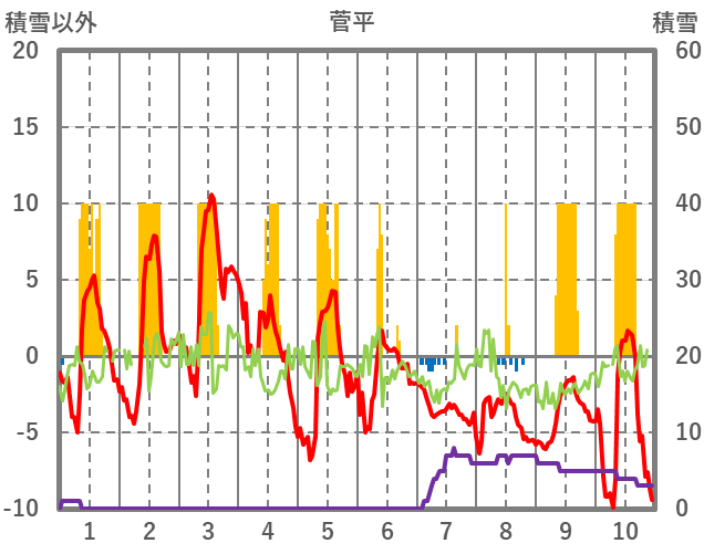 | 日 | 時 | 気温 | 降水 | 風向/風速 | 日照 | 積雪 | 降雪 |