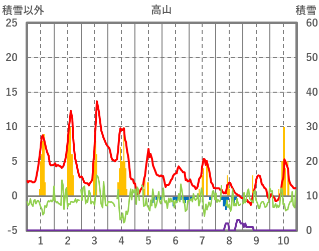 | 日 | 時 | 気温 | 降水 | 風向/風速 | 日照 | 積雪 | 降雪 |