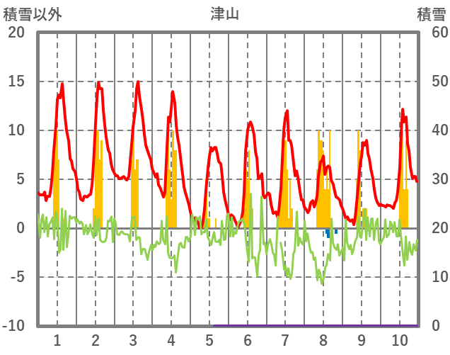| 日 | 時 | 気温 | 降水 | 風向/風速 | 日照 | 積雪 | 降雪 |