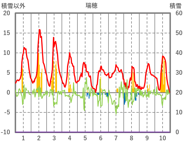 | 日 | 時 | 気温 | 降水 | 風向/風速 | 日照 | 積雪 | 降雪 |