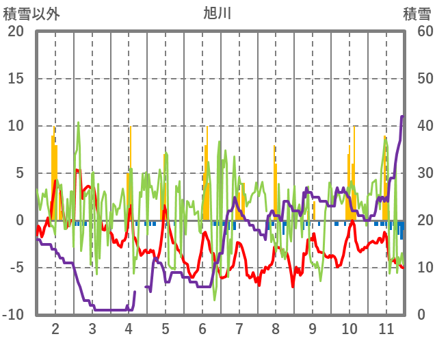 | 日 | 時 | 気温 | 降水 | 風向/風速 | 日照 | 積雪 | 降雪 |