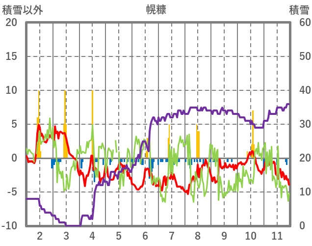 | 日 | 時 | 気温 | 降水 | 風向/風速 | 日照 | 積雪 | 降雪 |