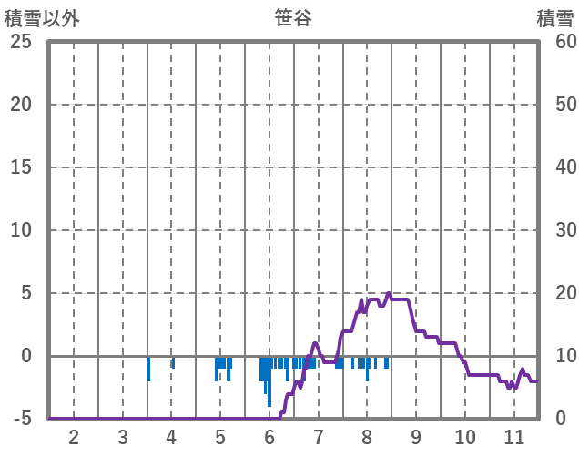 | 日 | 時 | 気温 | 降水 | 風向/風速 | 日照 | 積雪 | 降雪 |