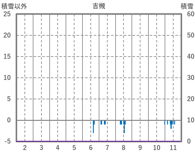 | 日 | 時 | 気温 | 降水 | 風向/風速 | 日照 | 積雪 | 降雪 |