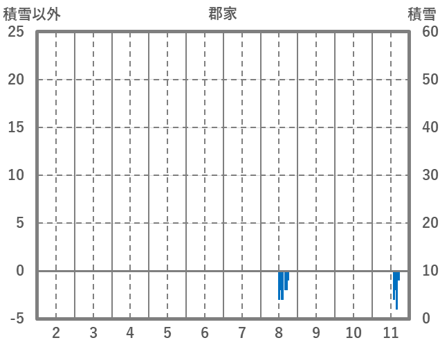 | 日 | 時 | 気温 | 降水 | 風向/風速 | 日照 | 積雪 | 降雪 |