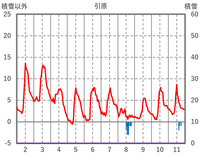 | 日 | 時 | 気温 | 降水 | 風向/風速 | 日照 | 積雪 | 降雪 |