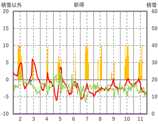 | 日 | 時 | 気温 | 降水 | 風向/風速 | 日照 | 積雪 | 降雪 |
