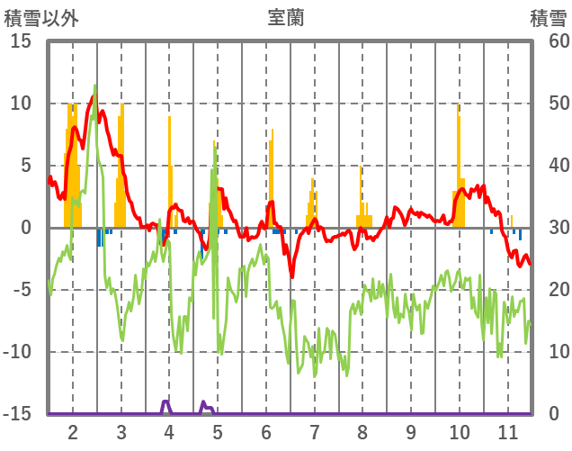 | 日 | 時 | 気温 | 降水 | 風向/風速 | 日照 | 積雪 | 降雪 |