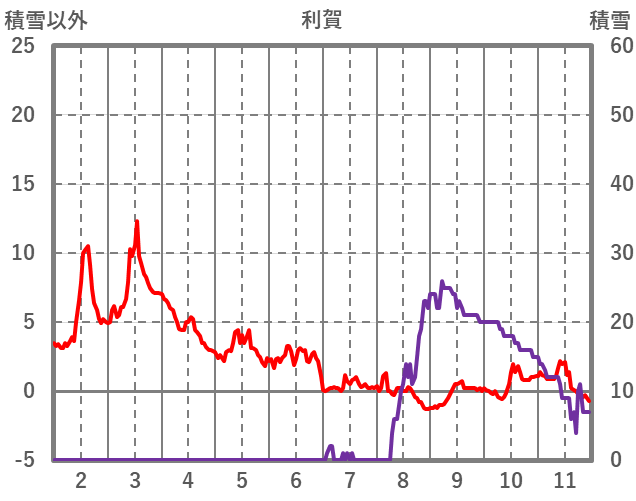 | 日 | 時 | 気温 | 降水 | 風向/風速 | 日照 | 積雪 | 降雪 |