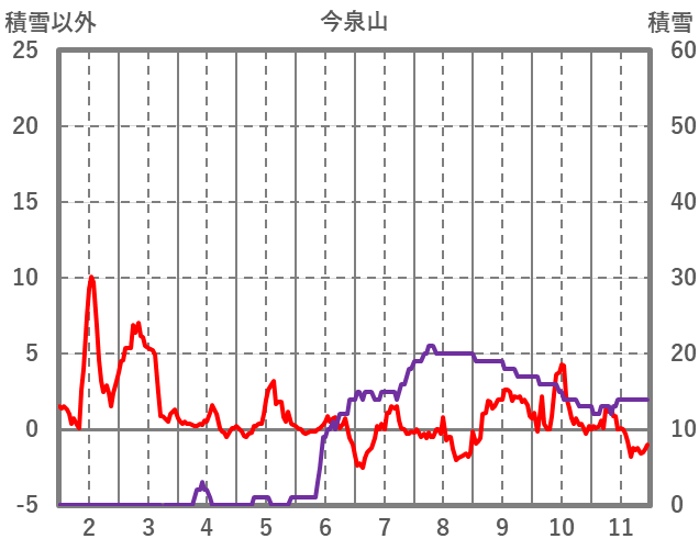 | 日 | 時 | 気温 | 降水 | 風向/風速 | 日照 | 積雪 | 降雪 |