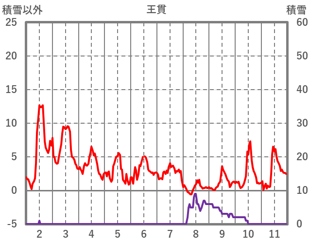 | 日 | 時 | 気温 | 降水 | 風向/風速 | 日照 | 積雪 | 降雪 |