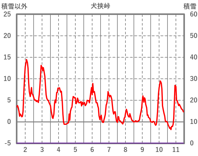 | 日 | 時 | 気温 | 降水 | 風向/風速 | 日照 | 積雪 | 降雪 |