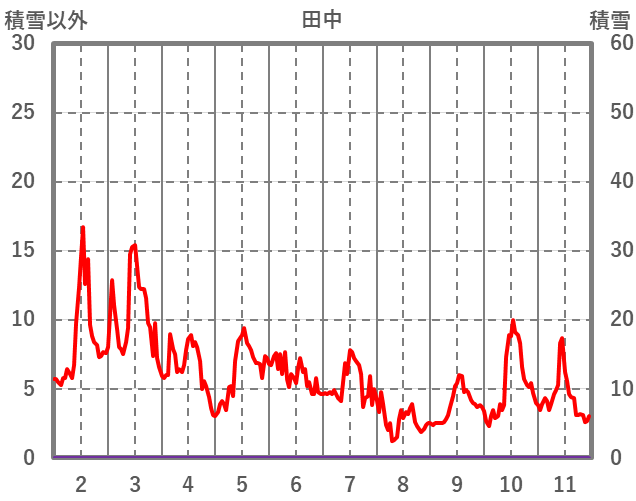 | 日 | 時 | 気温 | 降水 | 風向/風速 | 日照 | 積雪 | 降雪 |