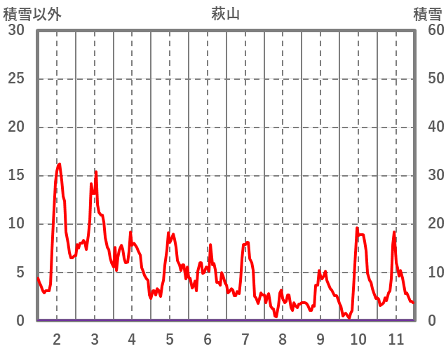| 日 | 時 | 気温 | 降水 | 風向/風速 | 日照 | 積雪 | 降雪 |