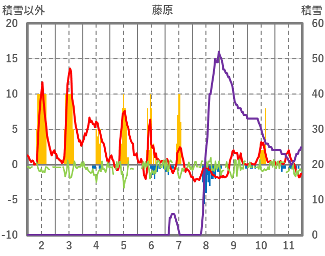 | 日 | 時 | 気温 | 降水 | 風向/風速 | 日照 | 積雪 | 降雪 |
