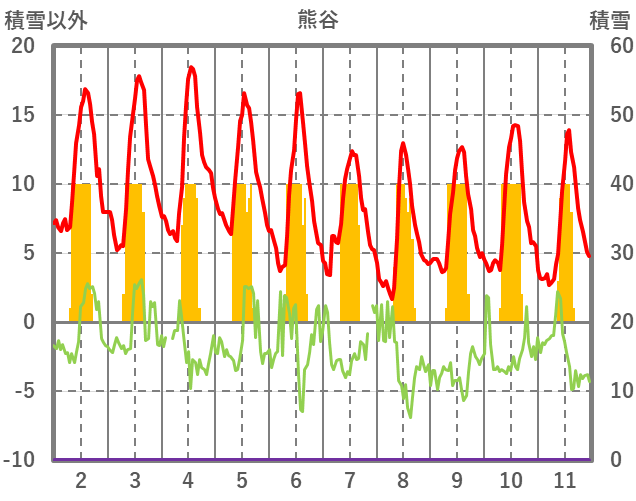 | 日 | 時 | 気温 | 降水 | 風向/風速 | 日照 | 積雪 | 降雪 |