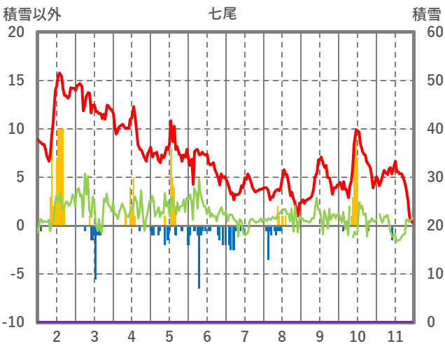 | 日 | 時 | 気温 | 降水 | 風向/風速 | 日照 | 積雪 | 降雪 |